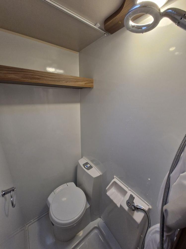 - Swivel cassette toilet with electric flush