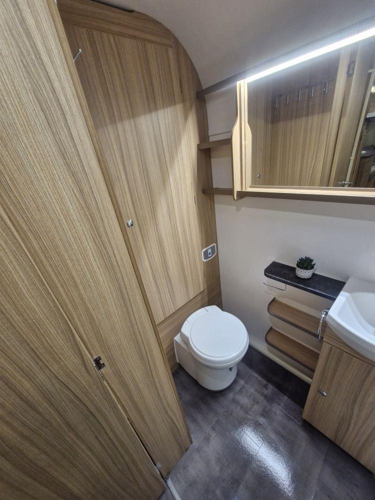 - Swivel cassette toilet with electric flush